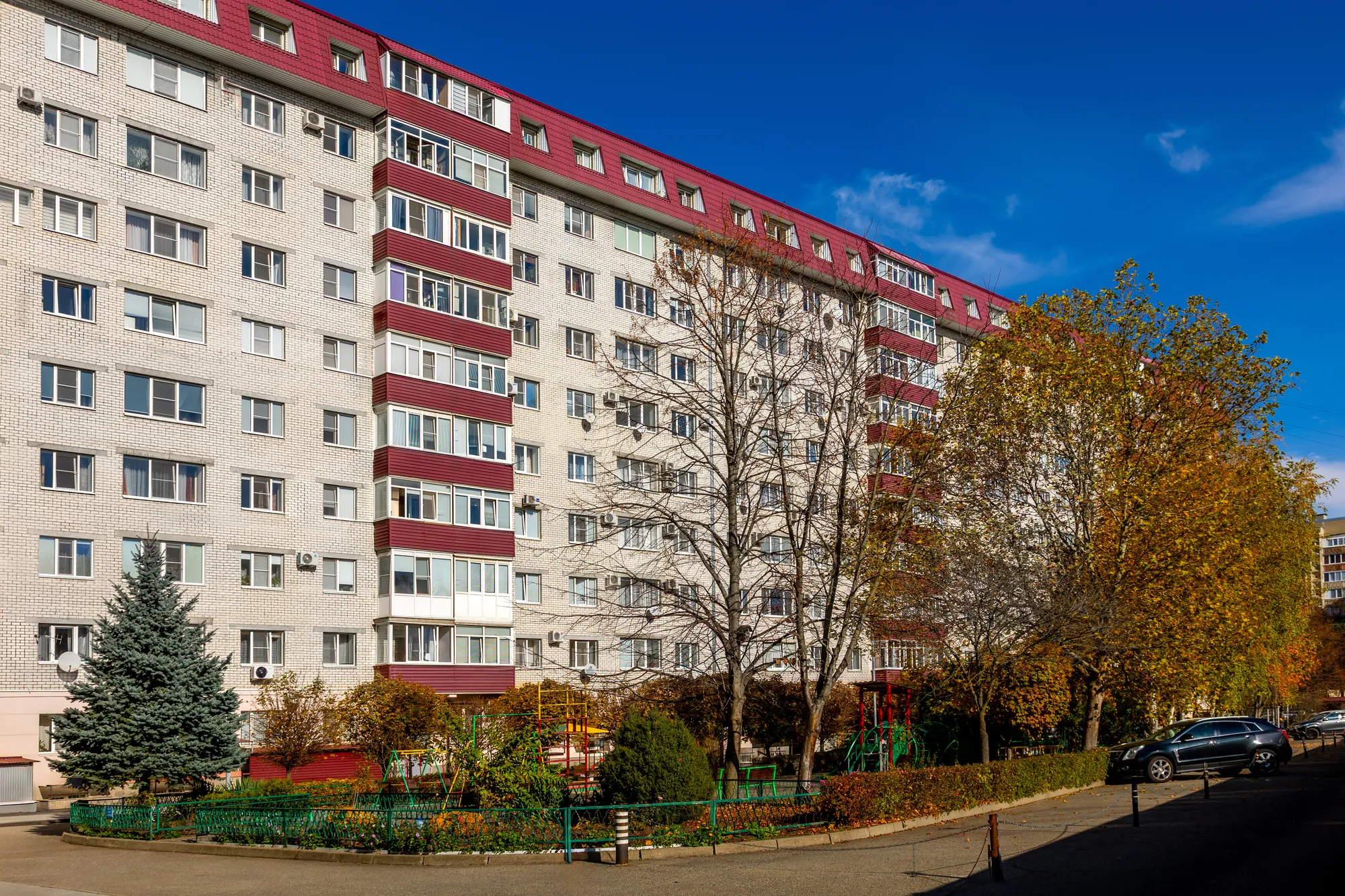 Один из самых больших жилых домов, созданных в этот период компанией: 245 квартир, 75 гаражей боксового типа. Построен с исполнением требований к строительству в сейсмических районах и с утеплением наружных стен. Прилегающая территория максимально благоустроена и озеленена, созданы все условия для отдыха как детей, так и взрослых.